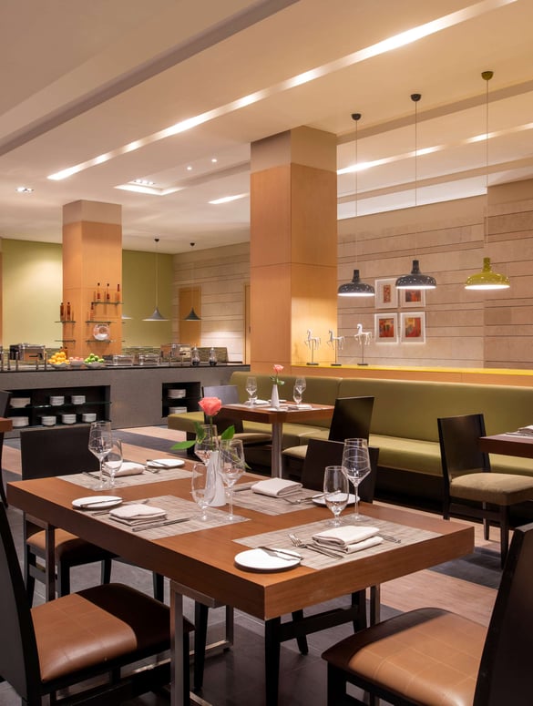 The smell of freshly baked pastries and coffee mingles around. The sound of a pan sizzling greets you upon arrival. This is the welcoming ambience at our Greens all-day dining restaurant – a venue that presents International buffet flavours throughout the day.